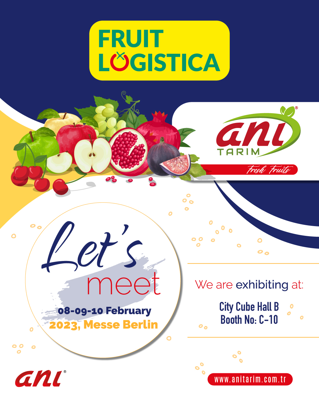 08-10 Şubat 2023 tarihlerinde Berlin'de düzenlenecek Fruit Logistica Fuar'ına katılacağız. Stand numaramız Salon B , C/10